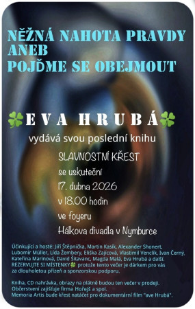 Křest knihy se uskuteční 17.dubna v Hálkově divadle v Nymburce od 18.00 hodin .Knihu pokřtí herec Jiří Štěpnička